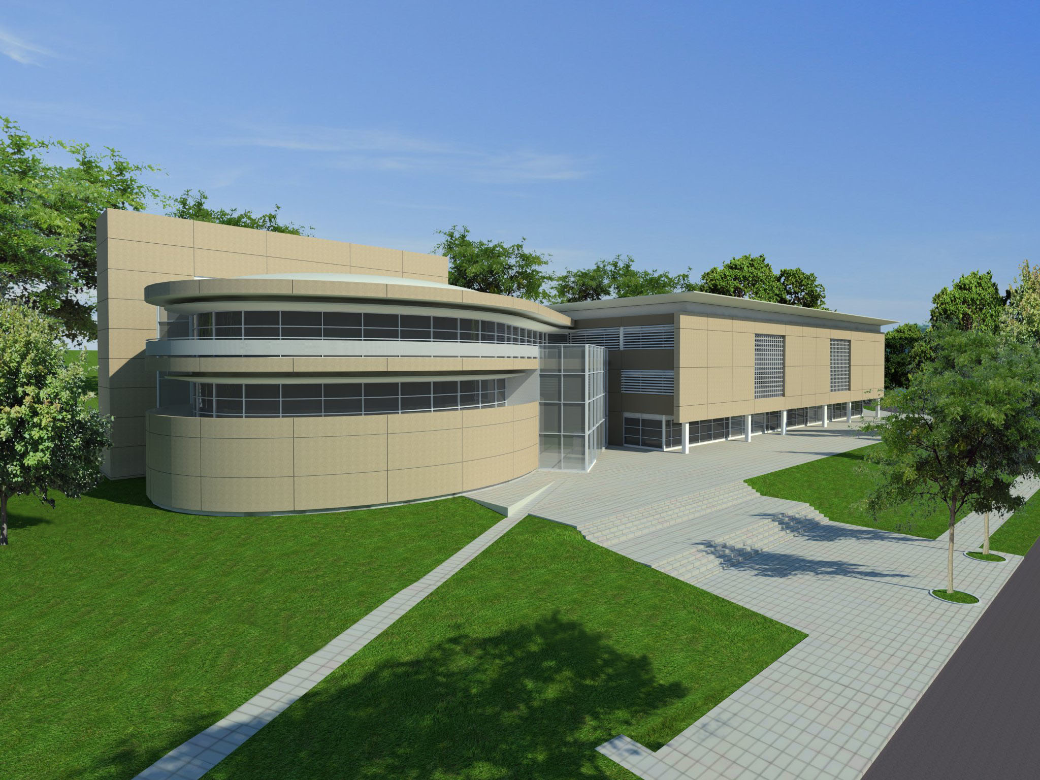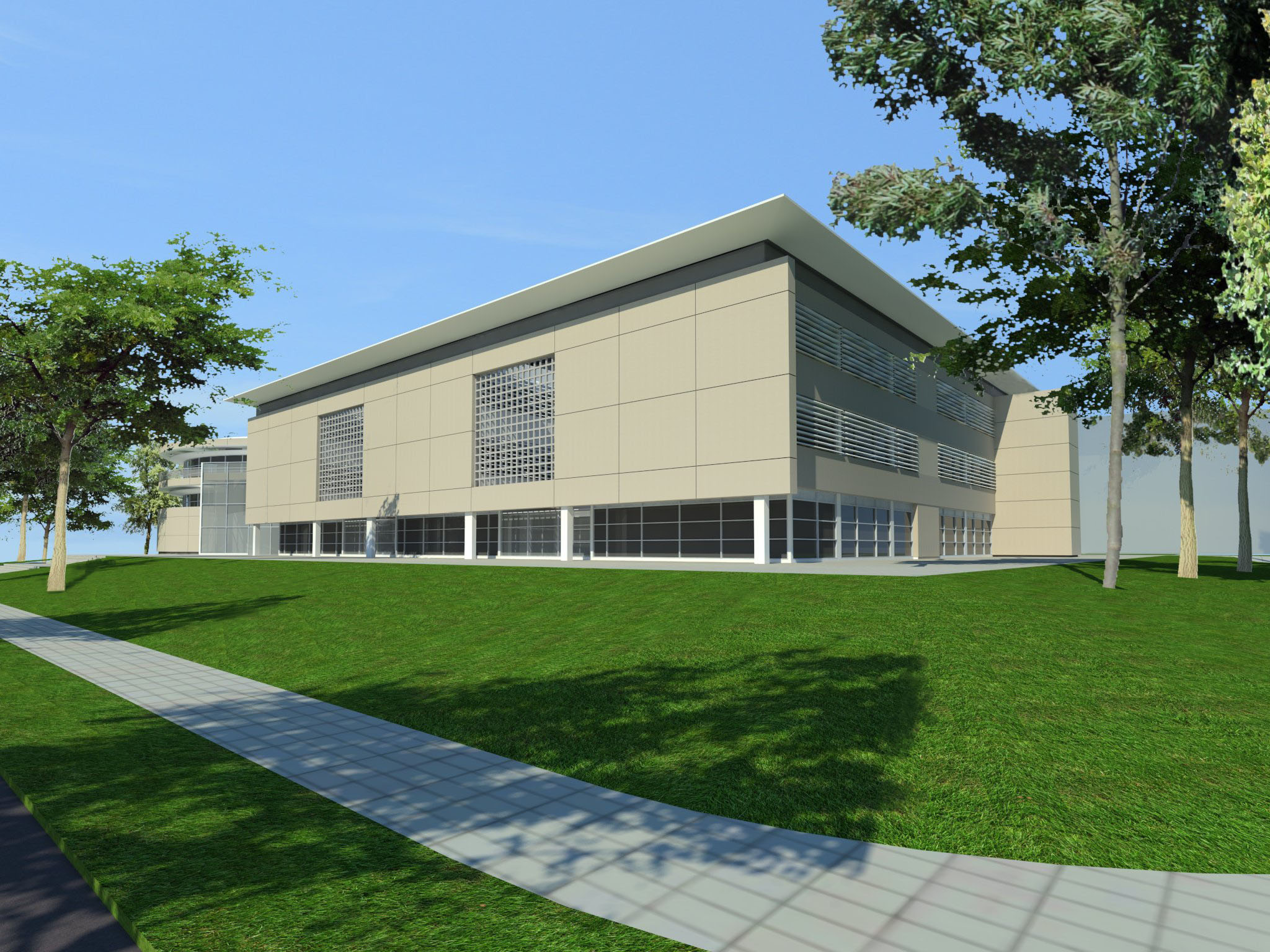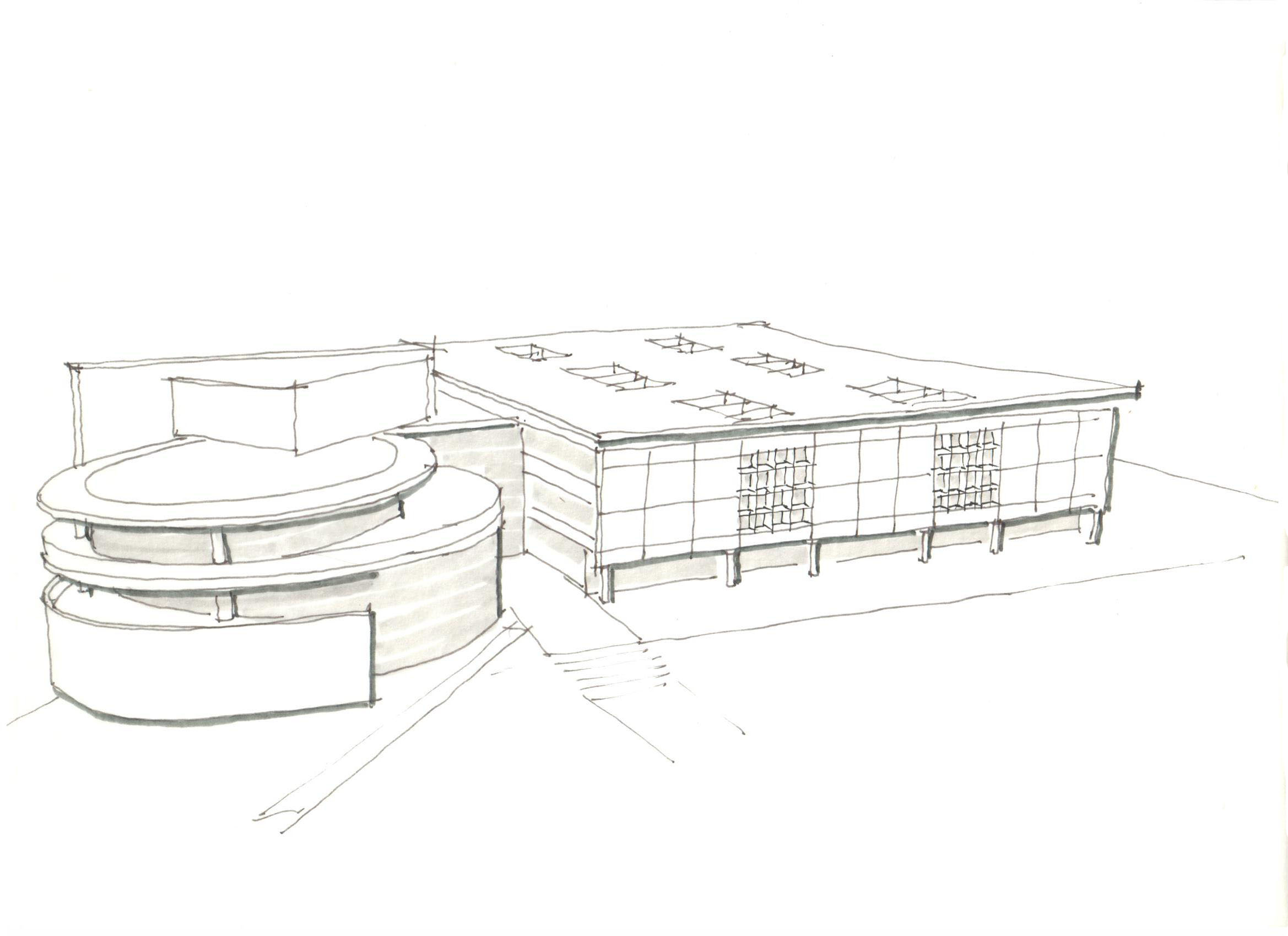 Reforma e ampliação dos atuais galpões de aulas da escola, constituindo um novo conjunto arquitetônico