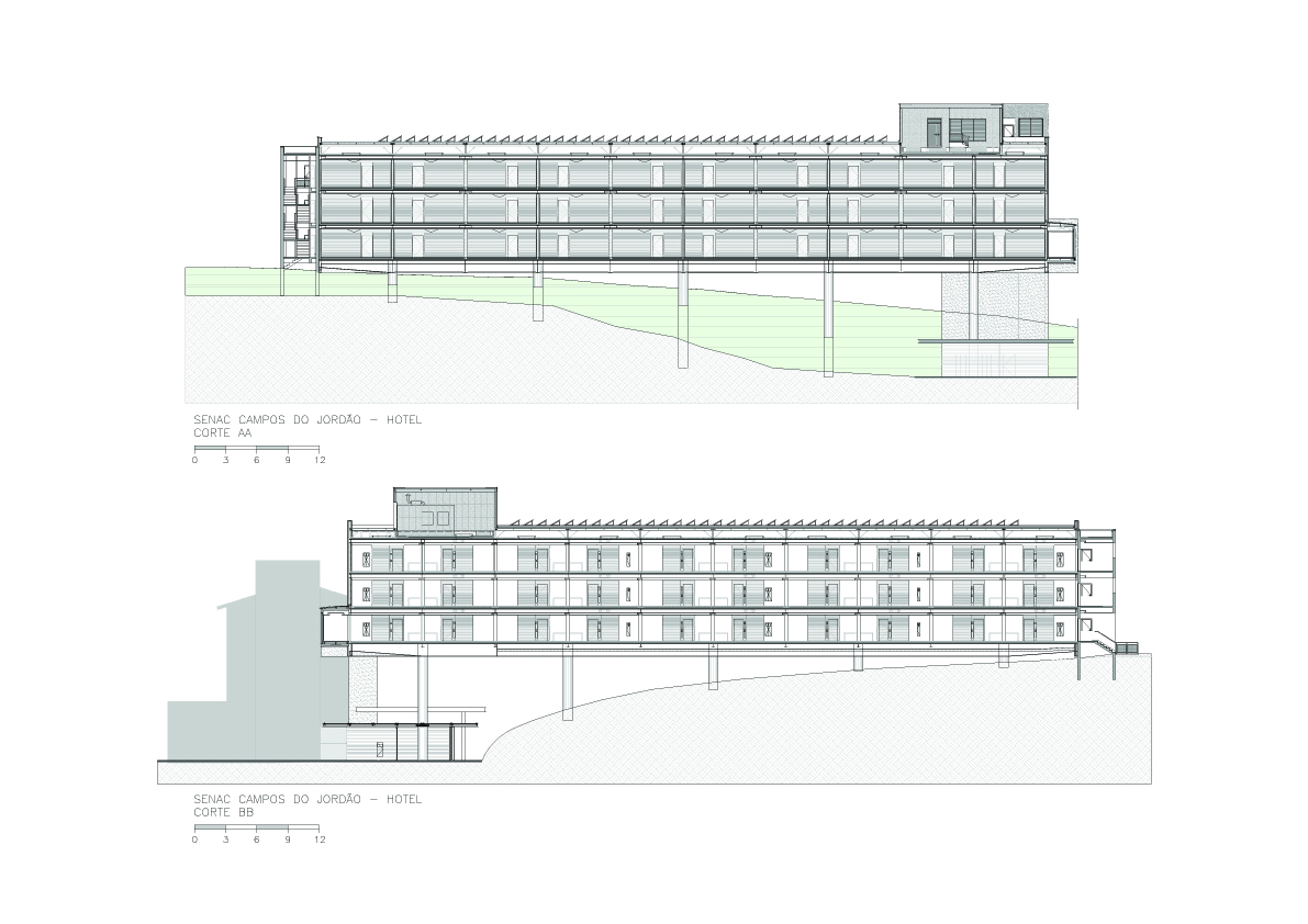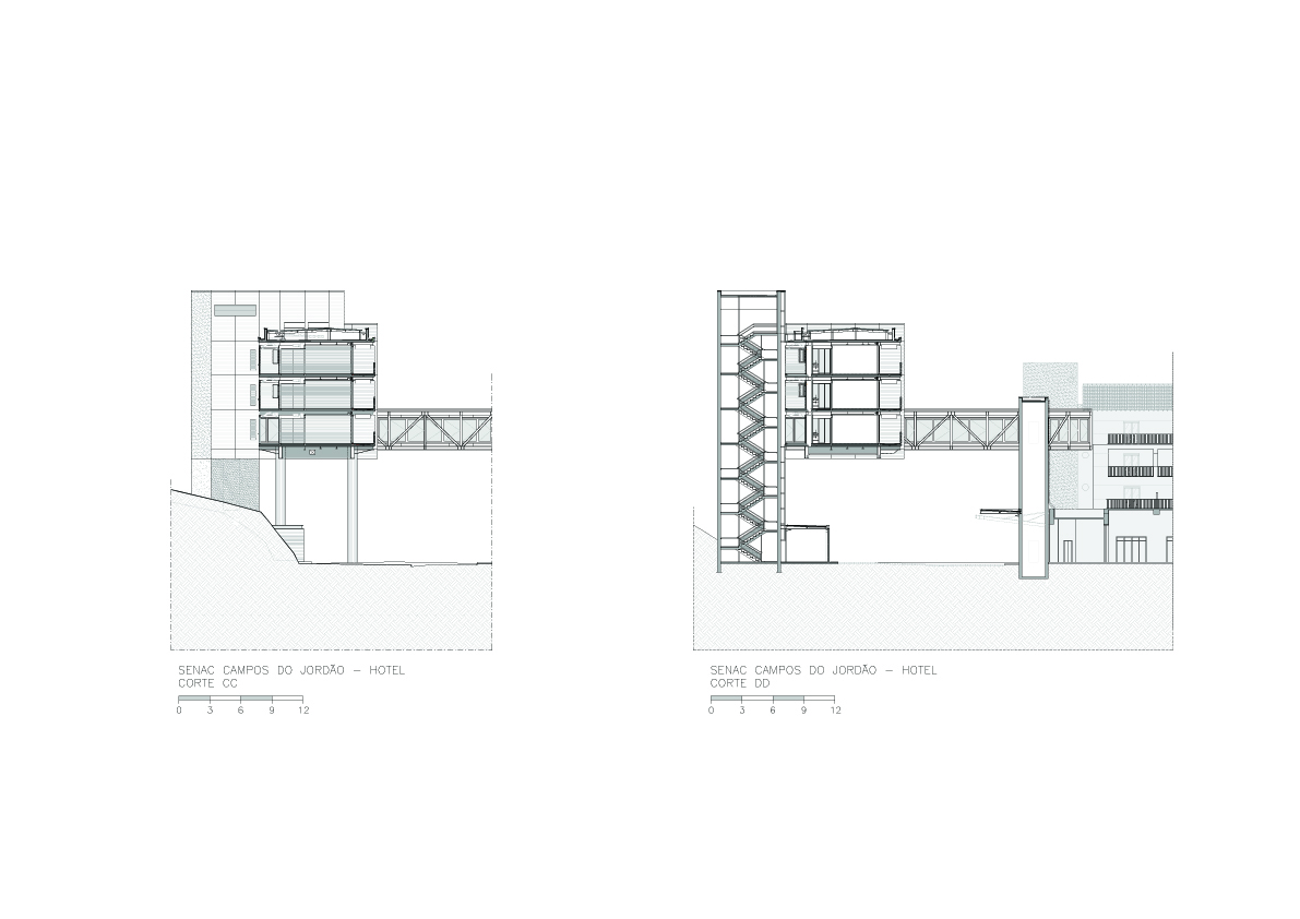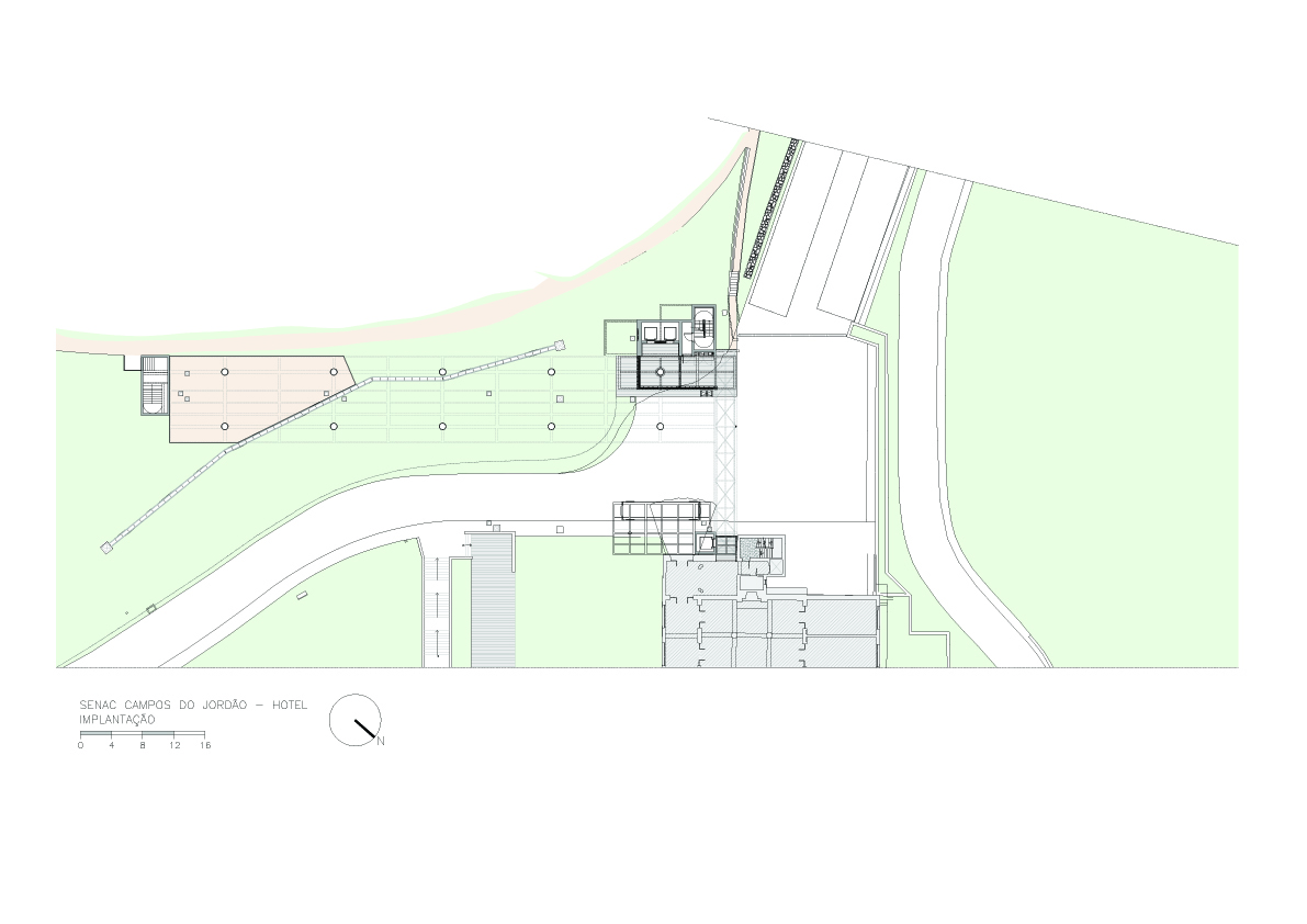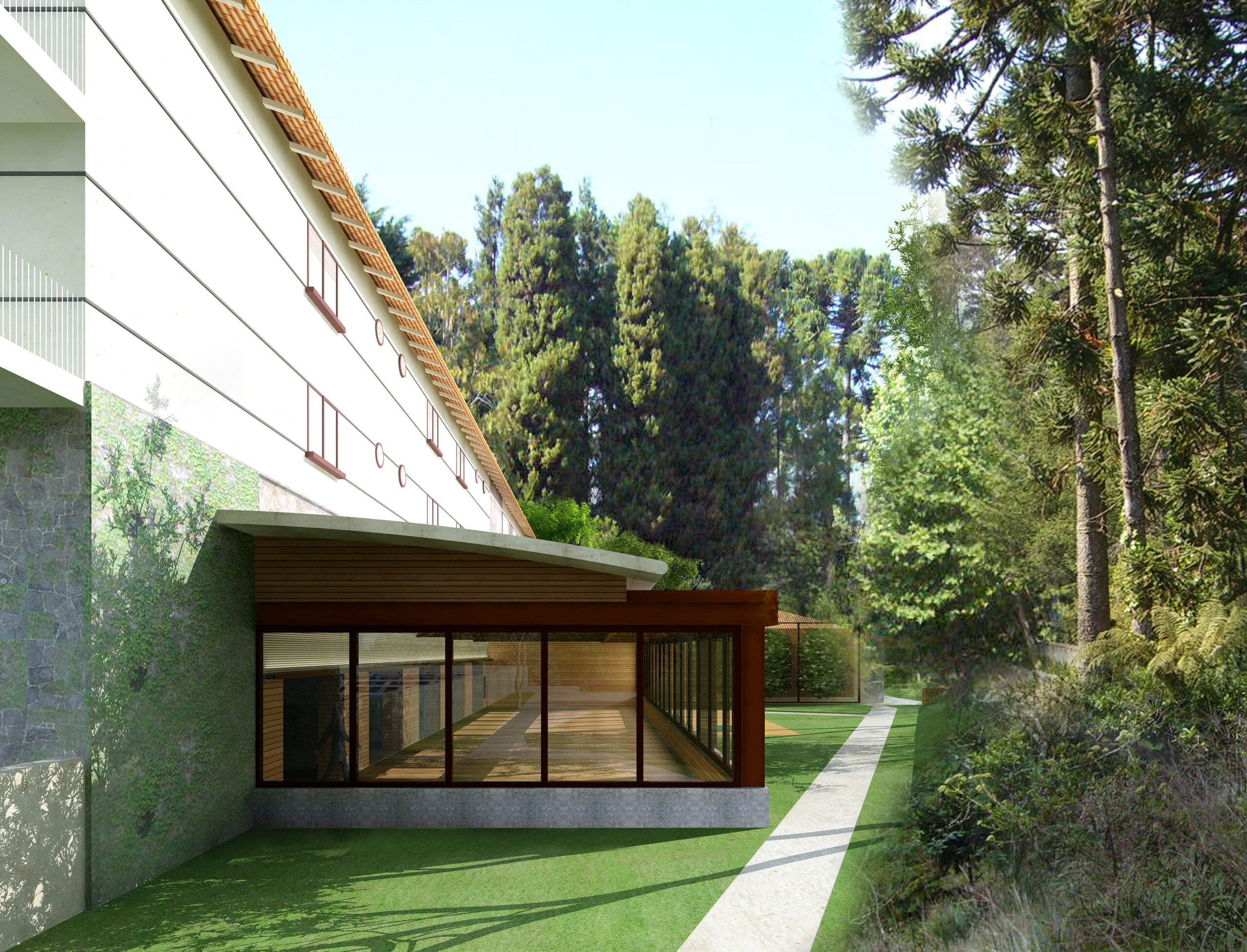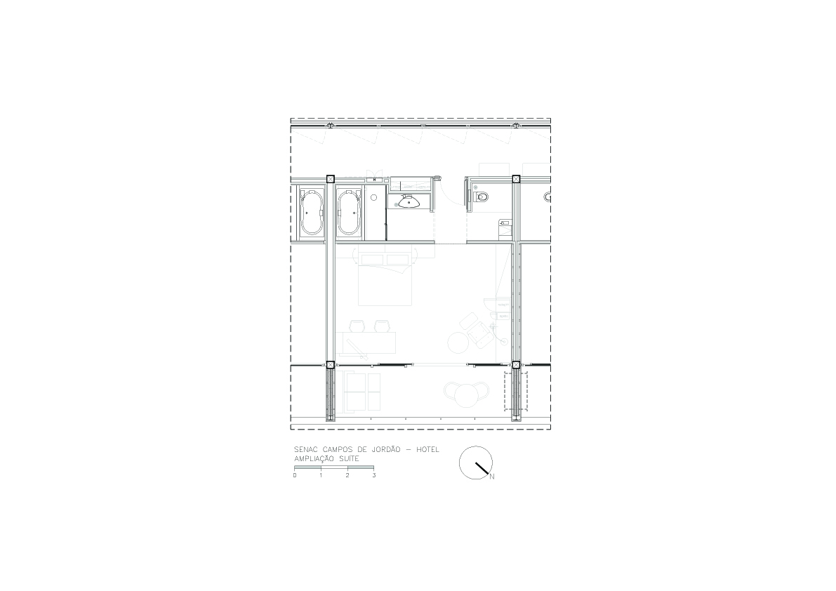 O tradicional hotel de Campos de Jordão precisava aumentar sua capacidade e qualificá-la ainda mais. A solicitação ao Aflalo/Gasperini, que nos tinha como parceiros, era a construção de um conjunto vertical de 30 modernas suítes de luxo e 10 suítes independentes de altíssimo luxo, com vistas exclusivas e isoladas do restante do hotel. As restrições para construção eram desviar da grande quantidade de araucárias, proibição de escavações e equacionar a ligação física do novo edifício com as suítes existentes. Conseguimos identificar no morro ao lado da rua interna de acesso, um trecho de pinheiros passiveis de remoção, e idealizamos um prédio elevado em pilotis, sem a necessidade escavações, e propusemos os três pavimentos permitidos com dez suítes de 50 m² cada, todas com varanda e vista para o vale arborizado na frente do casarão do hotel, a conexão se dá por uma ponte metálica de pedestres envidraçada, que conecta com o corredor do último andar do hotel existente. Para as suítes Masters, foi definido um percurso horizontal contornando amontanha oposta aos dois edifícios, onde foram desenhadas construções leves em estrutura metálicas, em dois níveis sem encostar no chão, com suas varandas voltadas para cidade de Campos de Jordão e para o nascer do sol.