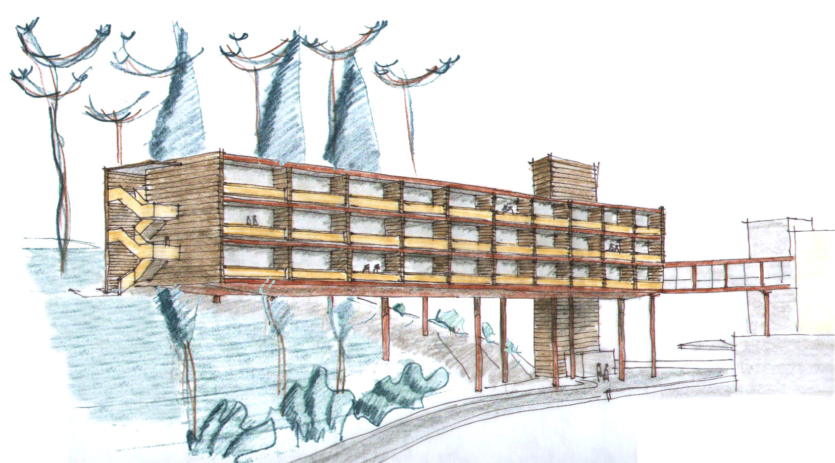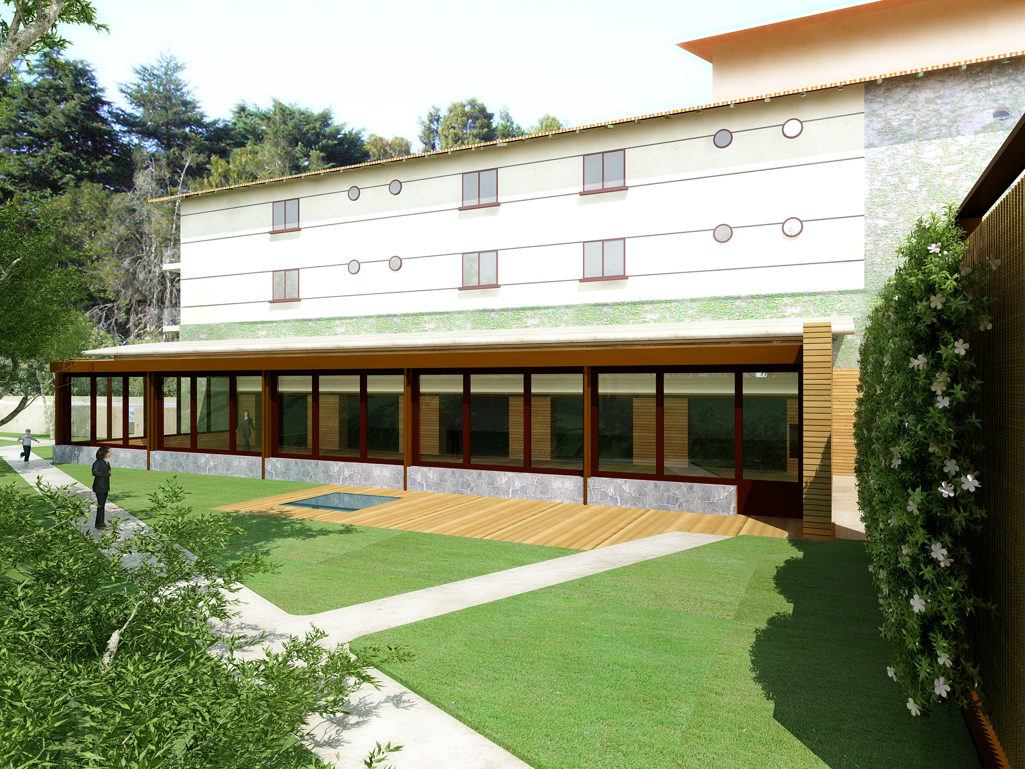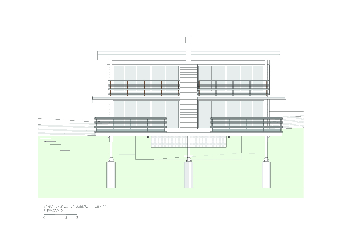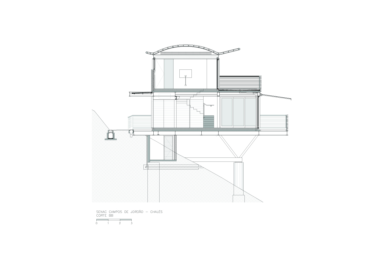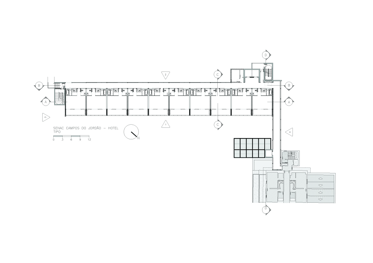 O tradicional hotel de Campos de Jordão precisava aumentar sua capacidade e qualificá-la ainda mais. A solicitação ao Aflalo/Gasperini, que nos tinha como parceiros, era a construção de um conjunto vertical de 30 modernas suítes de luxo e 10 suítes independentes de altíssimo luxo, com vistas exclusivas e isoladas do restante do hotel. As restrições para construção eram desviar da grande quantidade de araucárias, proibição de escavações e equacionar a ligação física do novo edifício com as suítes existentes. Conseguimos identificar no morro ao lado da rua interna de acesso, um trecho de pinheiros passiveis de remoção, e idealizamos um prédio elevado em pilotis, sem a necessidade escavações, e propusemos os três pavimentos permitidos com dez suítes de 50 m² cada, todas com varanda e vista para o vale arborizado na frente do casarão do hotel, a conexão se dá por uma ponte metálica de pedestres envidraçada, que conecta com o corredor do último andar do hotel existente. Para as suítes Masters, foi definido um percurso horizontal contornando amontanha oposta aos dois edifícios, onde foram desenhadas construções leves em estrutura metálicas, em dois níveis sem encostar no chão, com suas varandas voltadas para cidade de Campos de Jordão e para o nascer do sol.