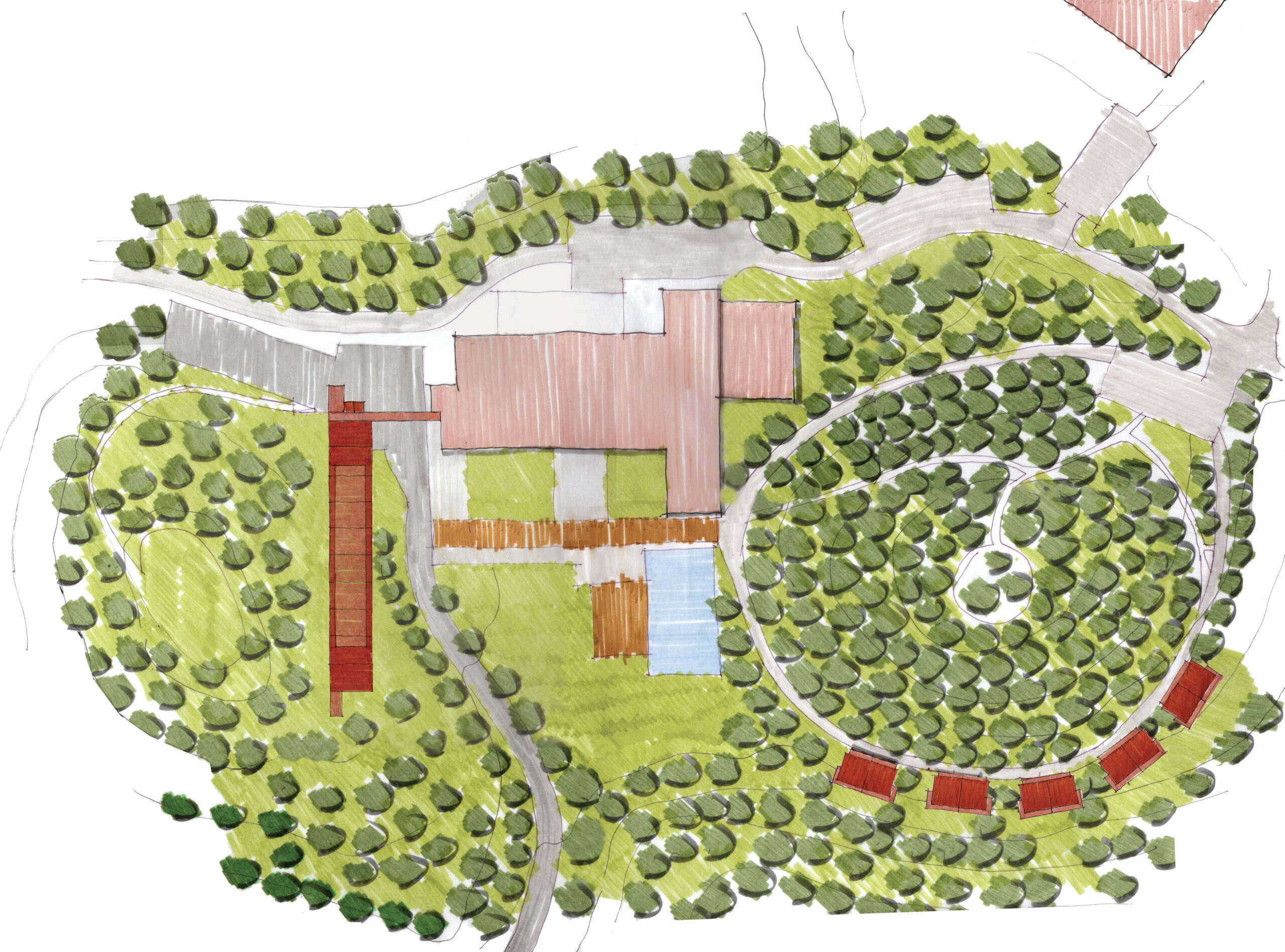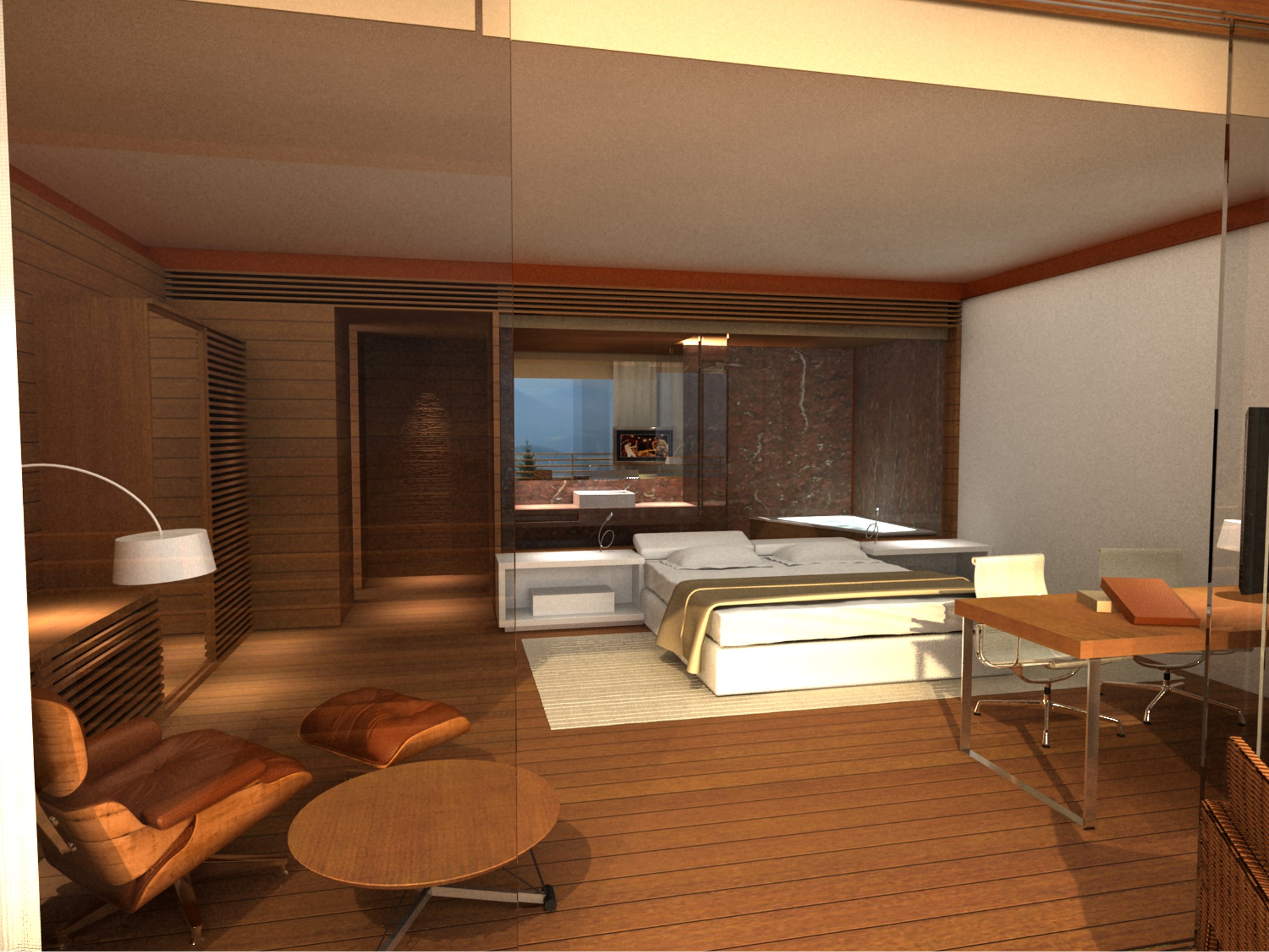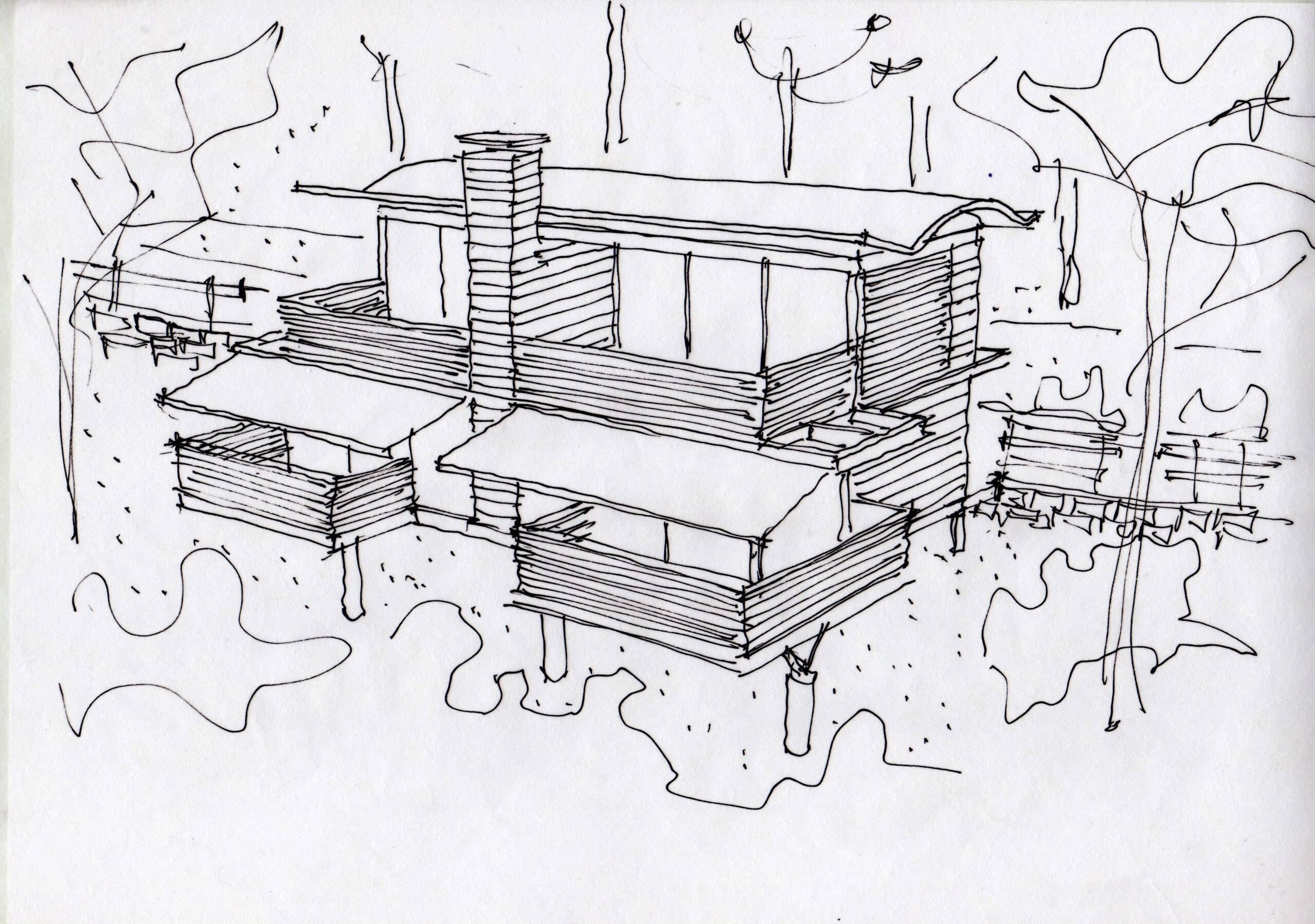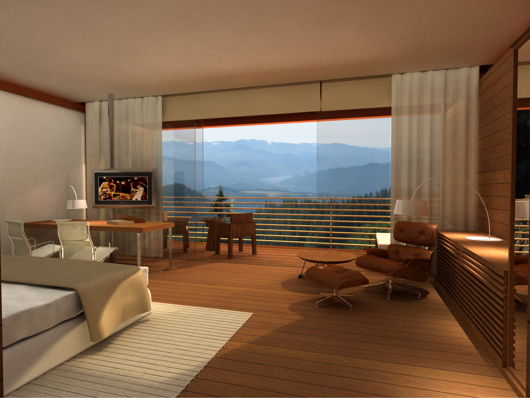 O tradicional hotel de Campos de Jordão precisava aumentar sua capacidade e qualificá-la ainda mais. A solicitação ao Aflalo/Gasperini, que nos tinha como parceiros, era a construção de um conjunto vertical de 30 modernas suítes de luxo e 10 suítes independentes de altíssimo luxo, com vistas exclusivas e isoladas do restante do hotel. As restrições para construção eram desviar da grande quantidade de araucárias, proibição de escavações e equacionar a ligação física do novo edifício com as suítes existentes. Conseguimos identificar no morro ao lado da rua interna de acesso, um trecho de pinheiros passiveis de remoção, e idealizamos um prédio elevado em pilotis, sem a necessidade escavações, e propusemos os três pavimentos permitidos com dez suítes de 50 m² cada, todas com varanda e vista para o vale arborizado na frente do casarão do hotel, a conexão se dá por uma ponte metálica de pedestres envidraçada, que conecta com o corredor do último andar do hotel existente. Para as suítes Masters, foi definido um percurso horizontal contornando amontanha oposta aos dois edifícios, onde foram desenhadas construções leves em estrutura metálicas, em dois níveis sem encostar no chão, com suas varandas voltadas para cidade de Campos de Jordão e para o nascer do sol.