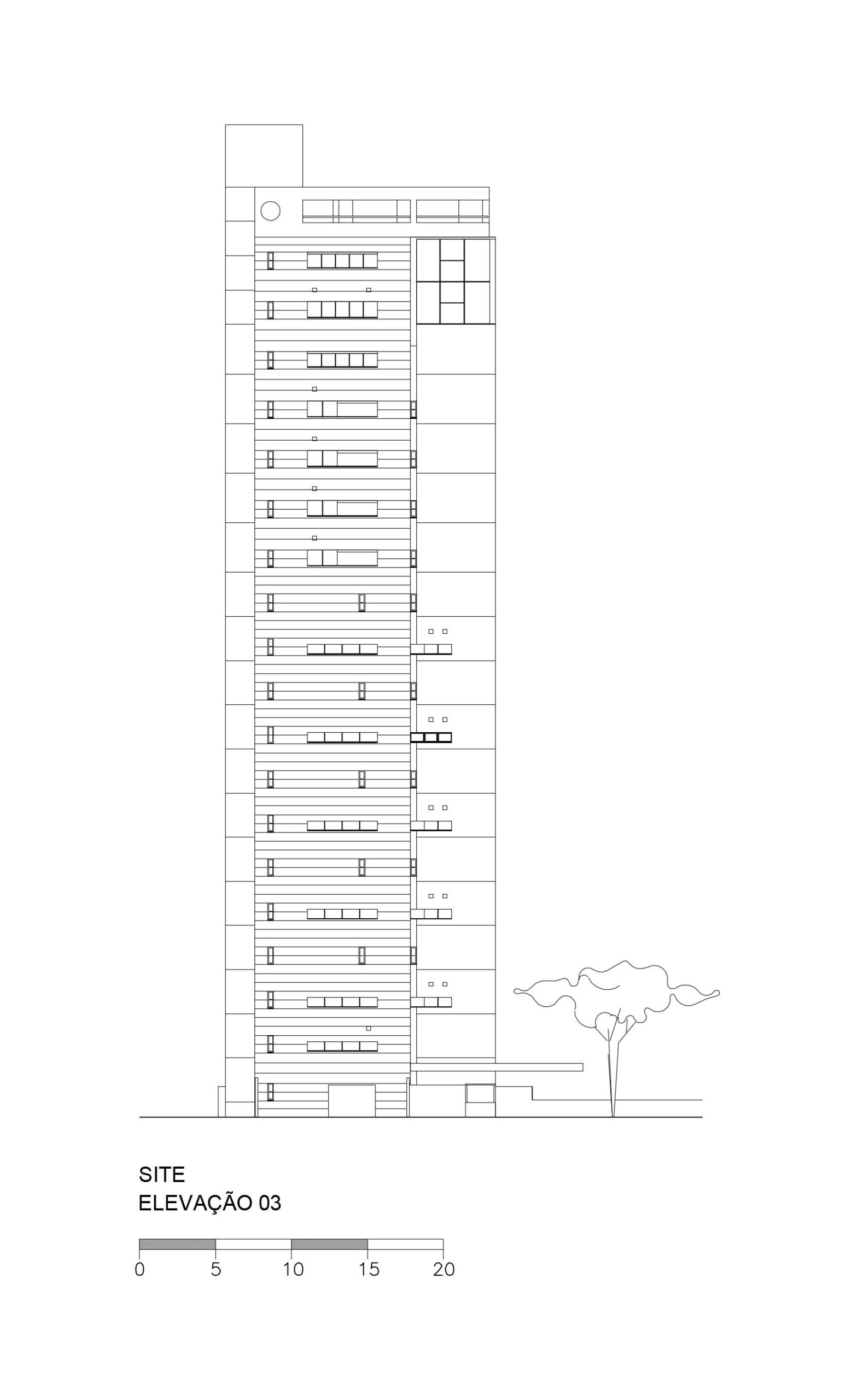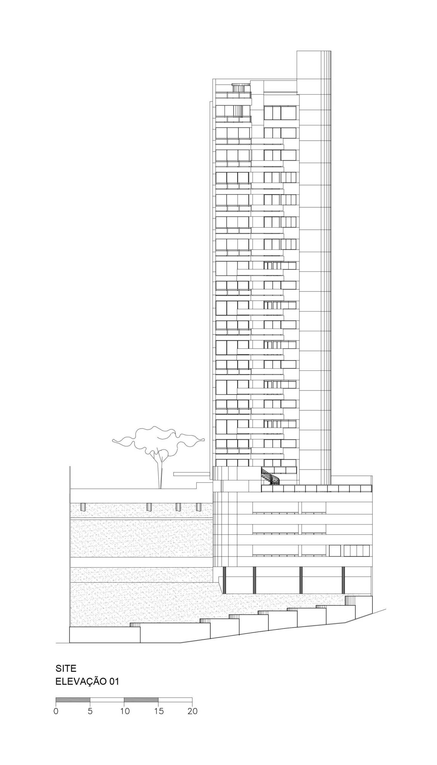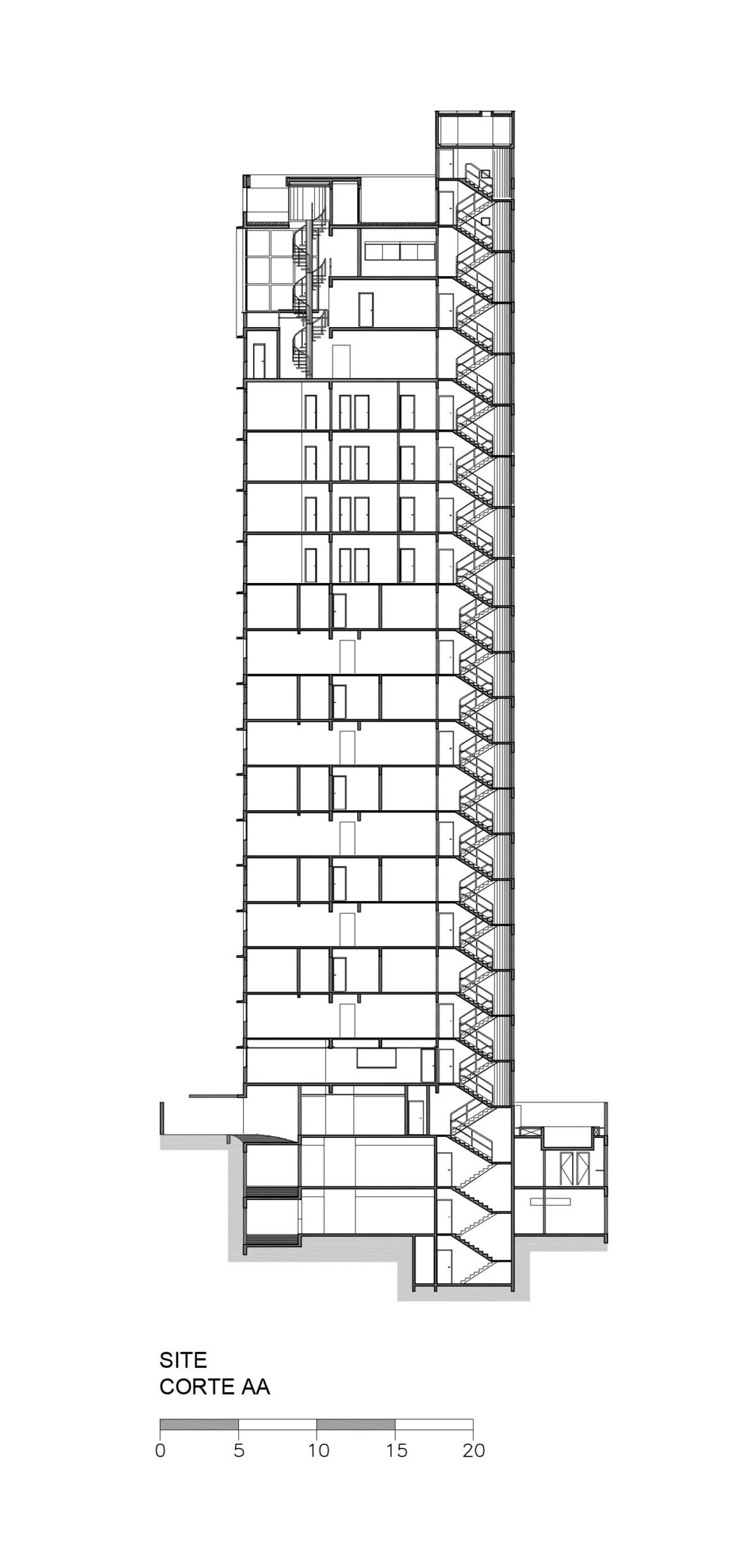 Contratados pelo arquiteto Jaime Cupertino para desenvolver o projeto deste edifício, cuja residência ocuparia os últimos pavimentos, buscamos uma solução arquitetônica que traduzisse sua proposta: unidades duplex, simplex e triplex, permitindo aproveitar ao máximo a vista privilegiada para a região noroeste de São Paulo.