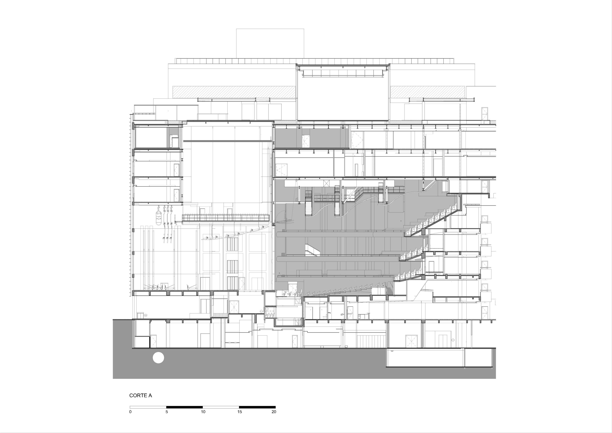 Após o incêndio que destruiu o tradicional Teatro Cultura Artística, o arquiteto Paulo Bruna desenvolveu um projeto para uma nova sala com capacidade para 1.400 pessoas, concebida para oferecer flexibilidade e atender tanto apresentações teatrais quanto musicais. Além desses usos, o programa previa espaços para recepções, uma sala adaptável para concertos, ambientes para eventos e áreas administrativas.