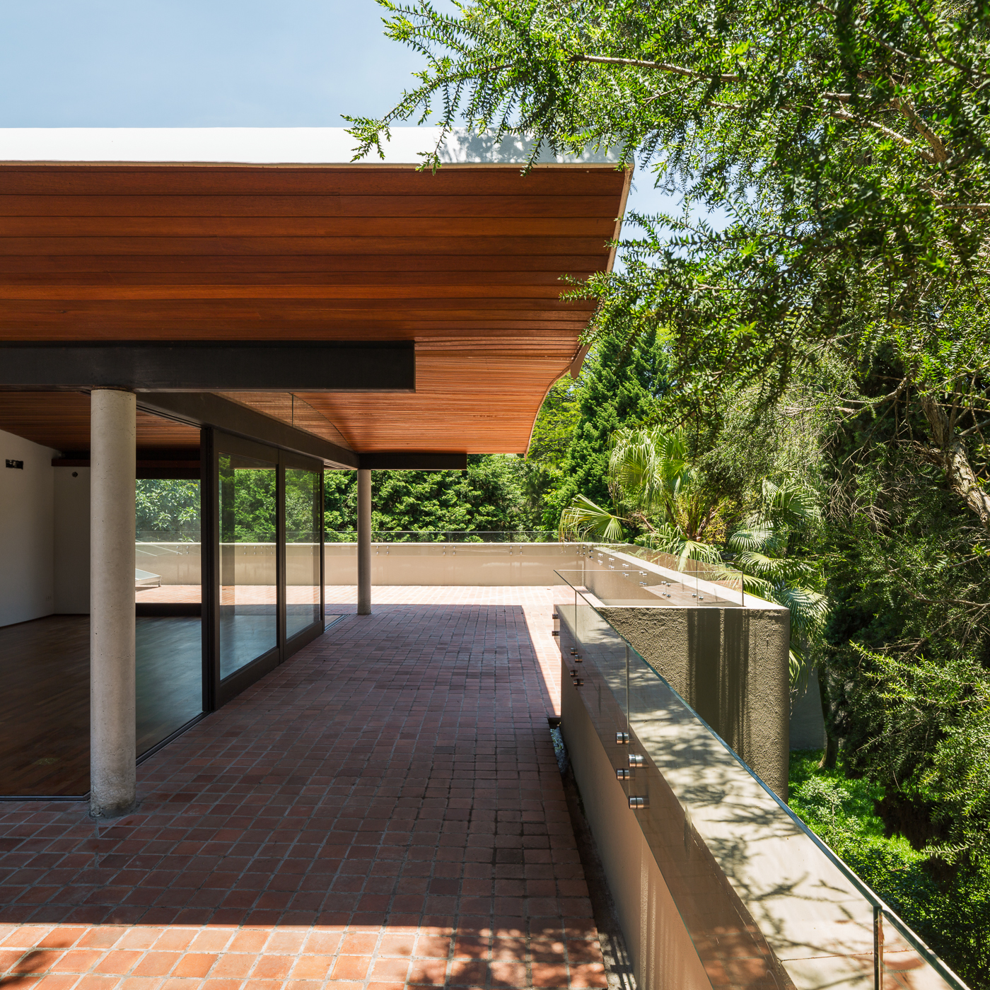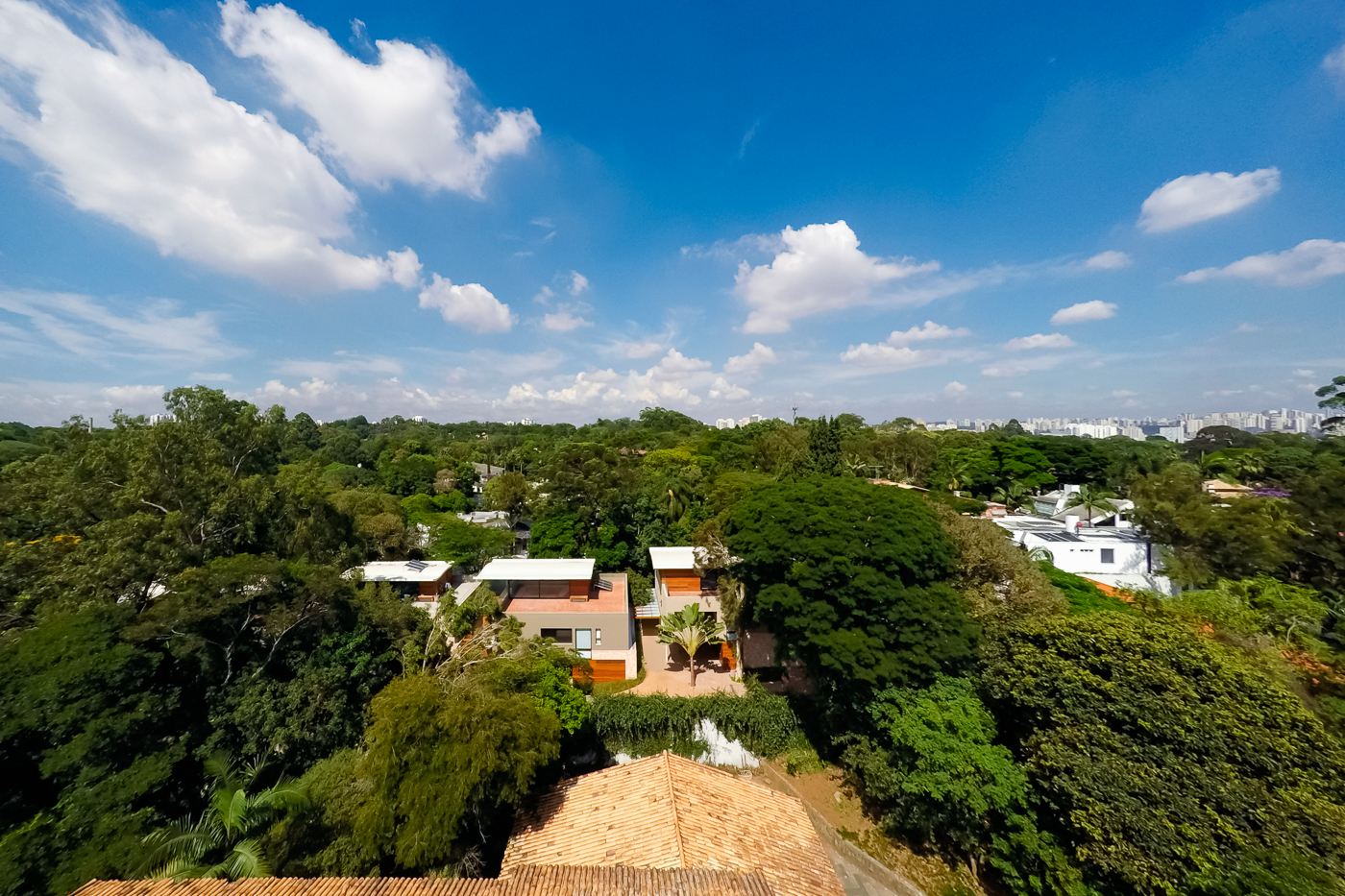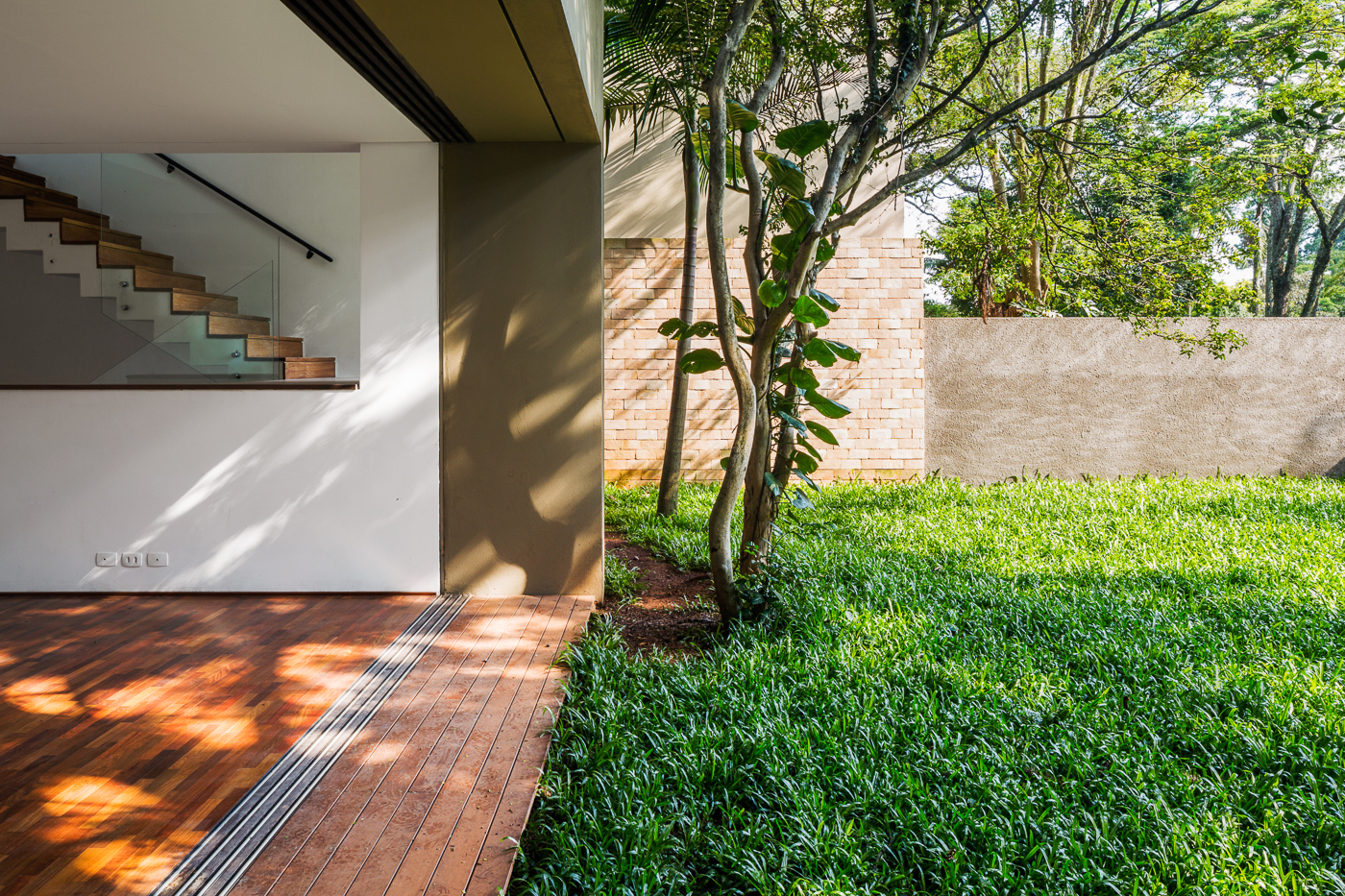As residências foram planejadas com três configurações diferentes de planta, adequadas às condições do terreno e ao diálogo com a vegetação preservada. No térreo, as áreas sociais se integram aos jardins privativos. A escada, posicionada de forma estratégica, conecta a área íntima ao salão da cobertura, uma varanda elevada envolvida pelas copas das árvores.